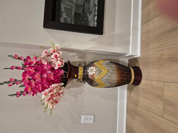 Brand new large vase .beautiful and elegant. Floor-standing 28" tall. Perfect in an entry way or hallway!